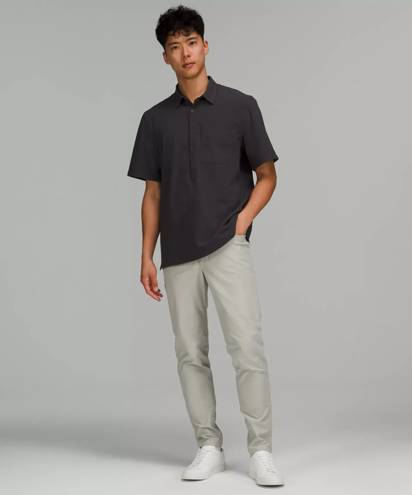 Cotton-blend, four-way stretch fabric unlocks the freedom to move in total comfort.