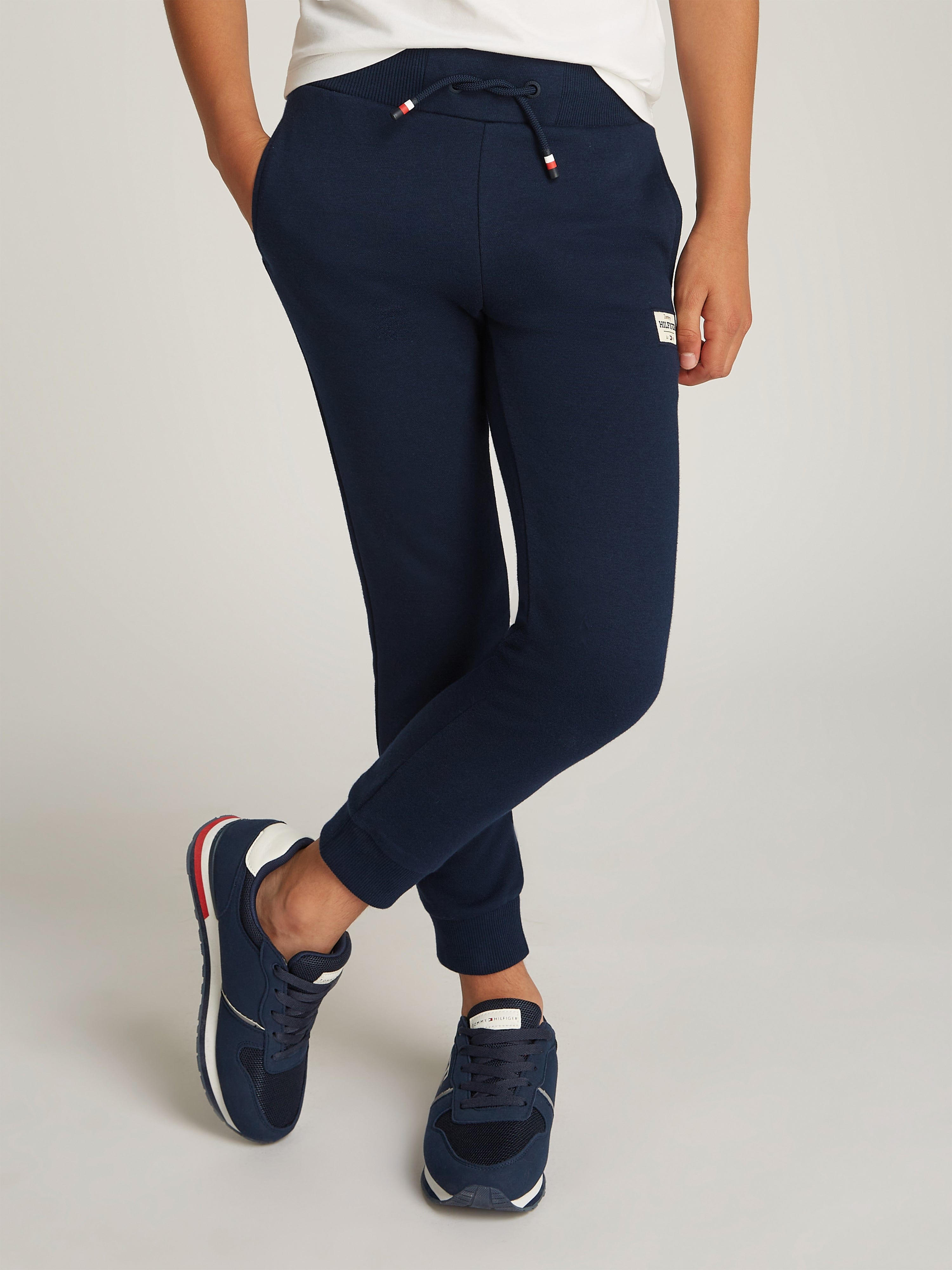 Introducing the Boys Monotype 1985 Label Joggers in Navy by Tommy Hilfiger – a timeless classic for SS2025. Crafted with exceptional attention to detail, these joggers blend iconic style with contemporary comfort. Key features include:
