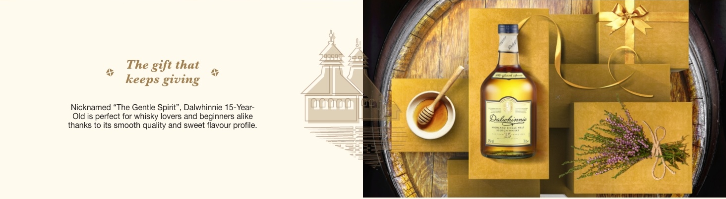 Dalwhinnie 15 Year Old is an elegant and smooth introduction to single malt whisky. With a light, fruity palate and a hint of heather, it offers clean, malty-sweet flavors and a gentle smoky warmth. As Scotland's highest and coldest distillery, Dalwhinnie enhances its honeyed sweetness when served chilled or over ice, making it an excellent gift for whisky lovers.