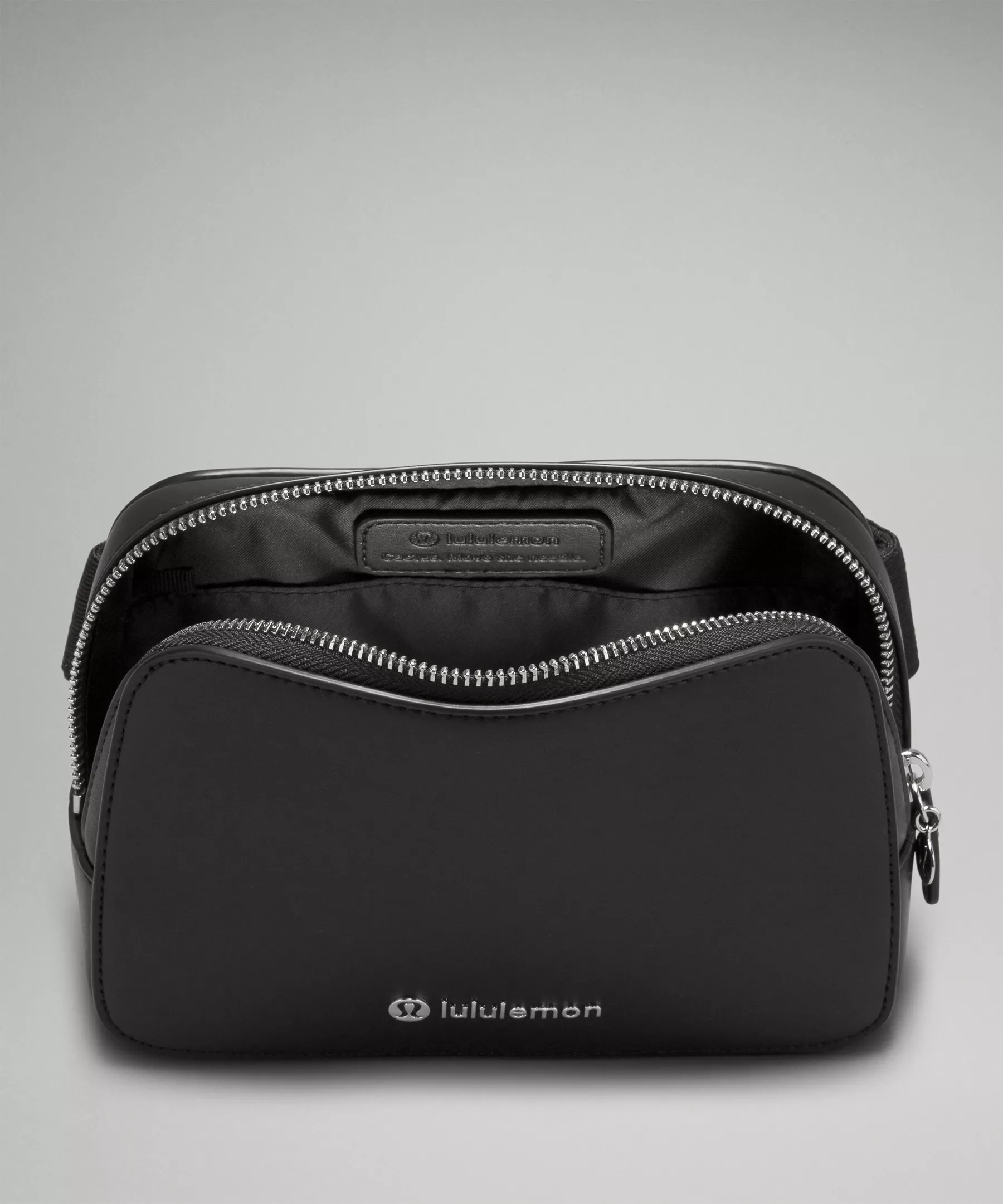 - Once you find your perfect fit, tuck the excess belt bag strap into the elastic loops