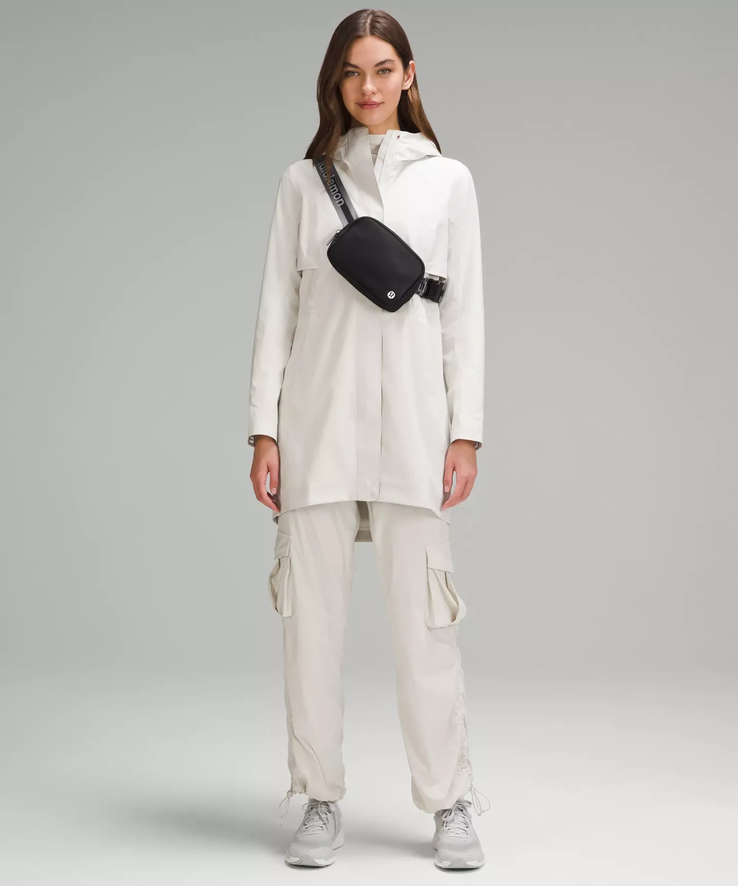 - Once you find your perfect fit, tuck the excess belt bag strap into the elastic loops