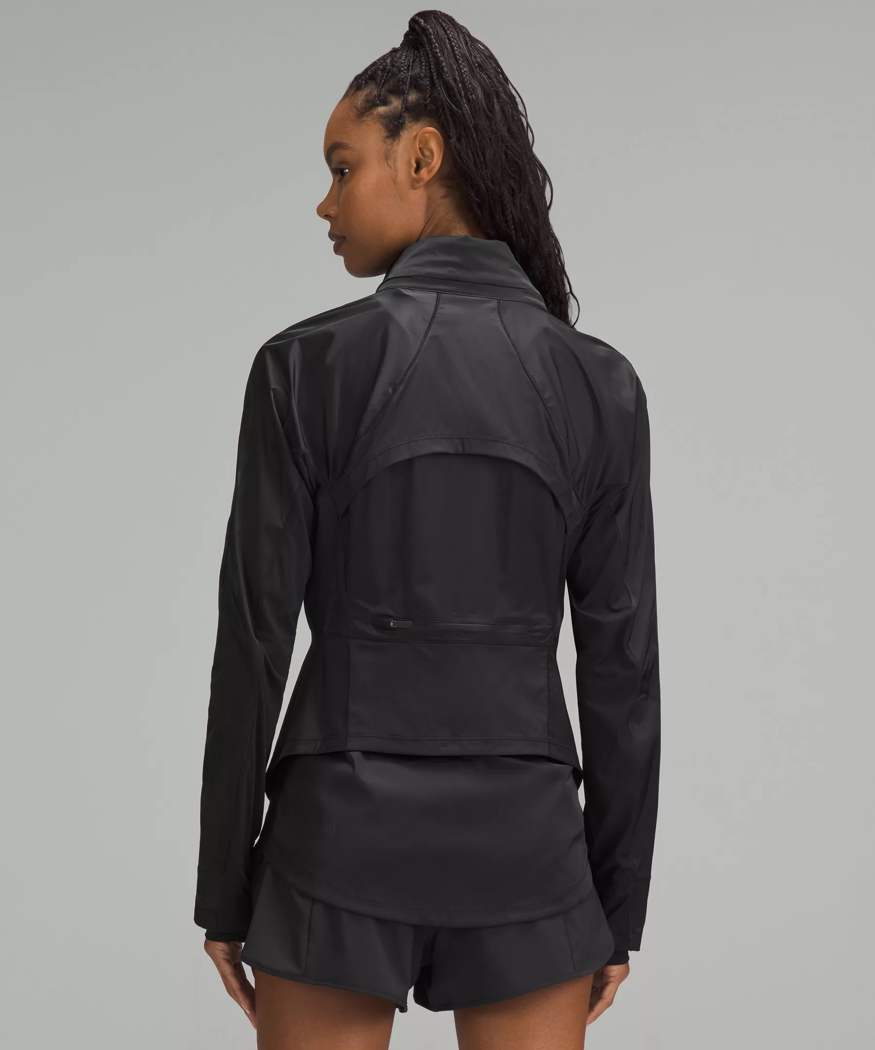 - Zippered back pocket