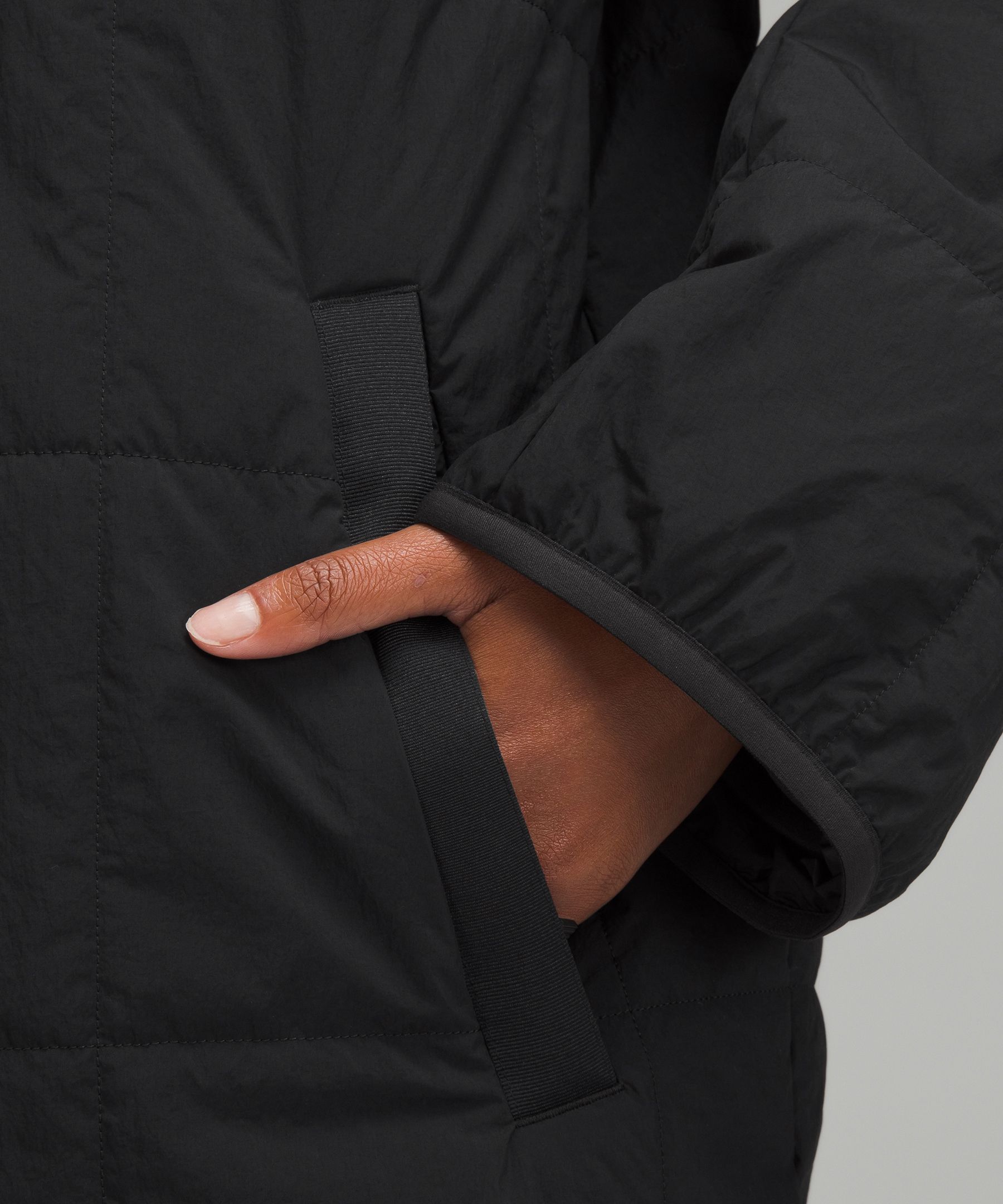 - Zippered hand pockets with hidden phone sleeve