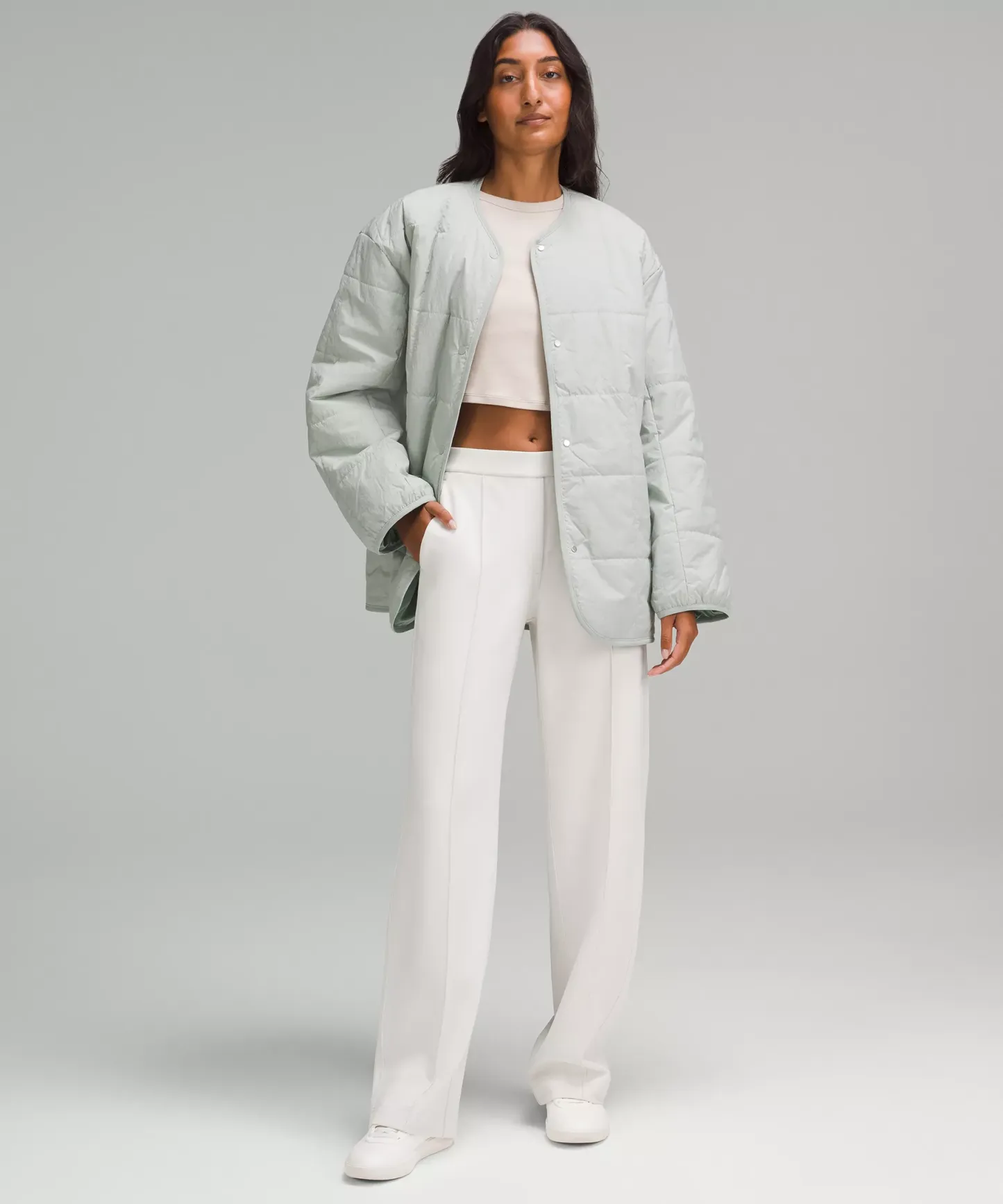 - Relaxed fit feels roomy and can be worn over larger layers. Size down if you prefer a slimmer fit