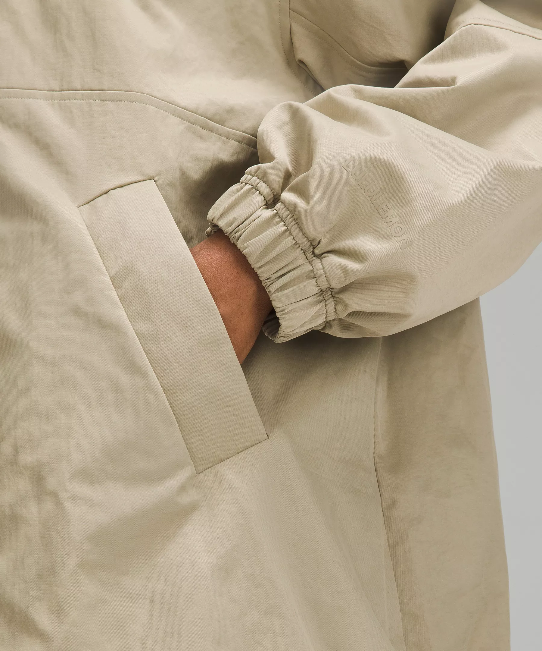 - Zippered hand pockets with hidden phone sleeve