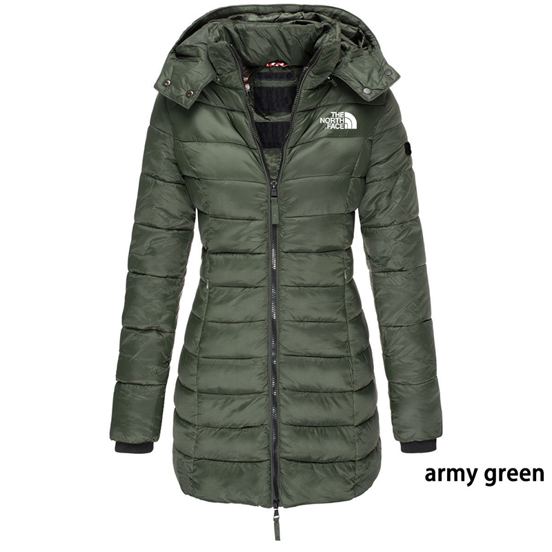 Winter women's mid-length padded jacket solid color hooded warm jacket