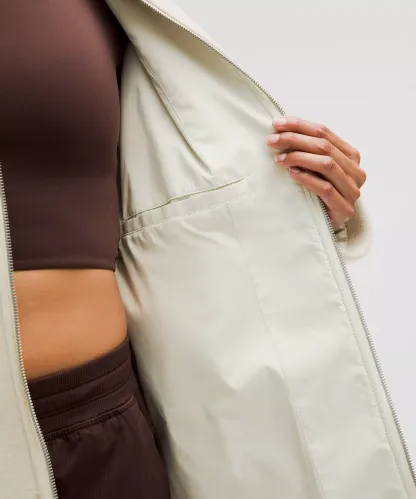 - Zippered hand pockets with hidden phone sleeve