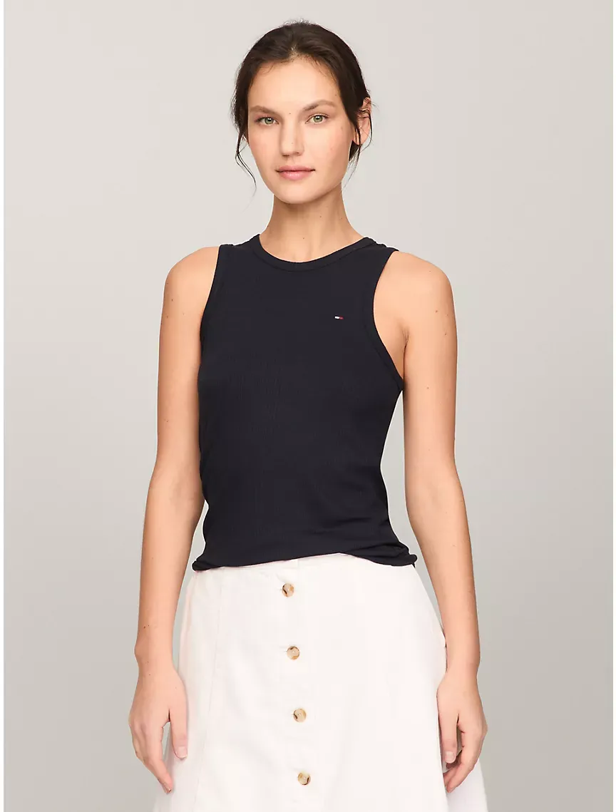 Slim Fit Solid Ribbed Stretch Tank Top