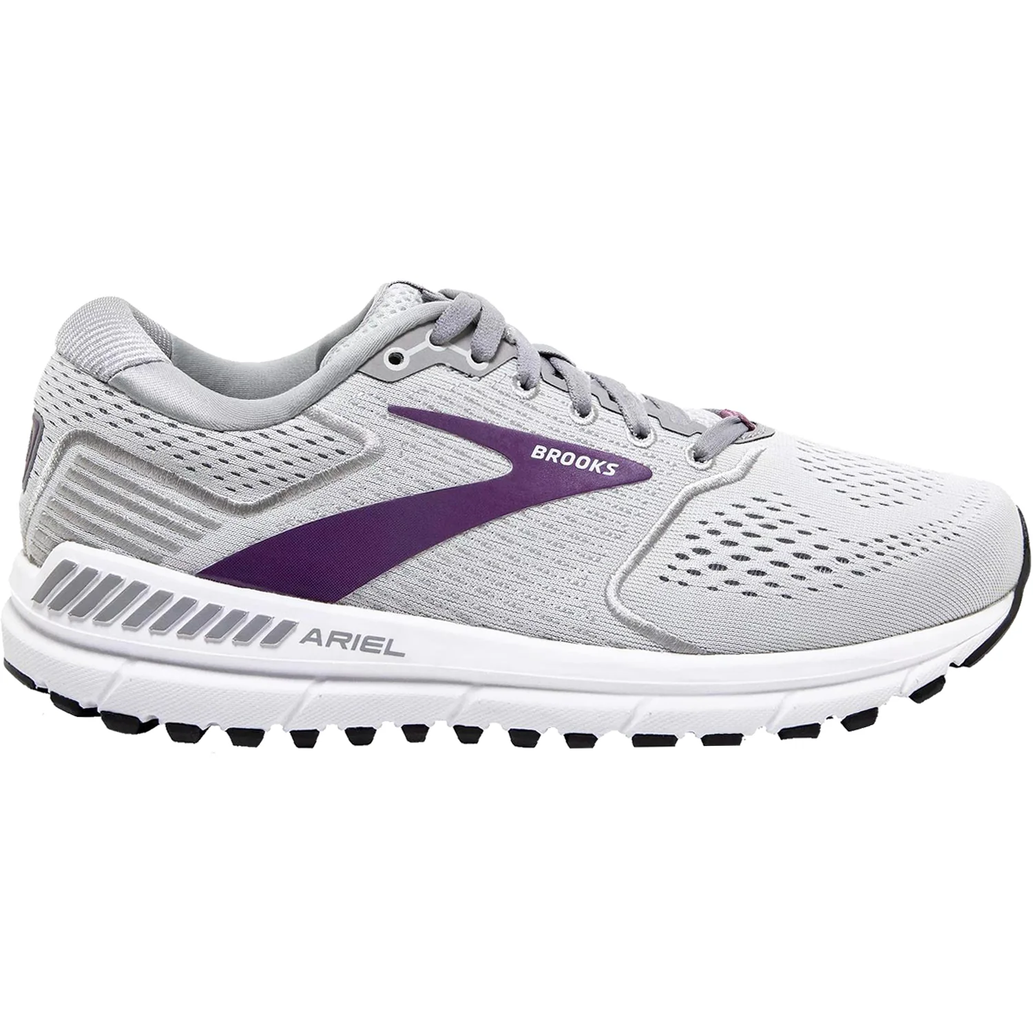 These Brooks Ariel 20 Oyster/Alloy/Grape Mesh Women's Shoes have the following features: