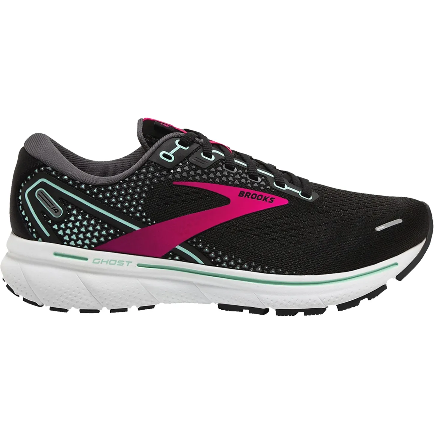 These Brooks Ghost 14 Black/Pink/Yucca Women's Shoes have the following features: