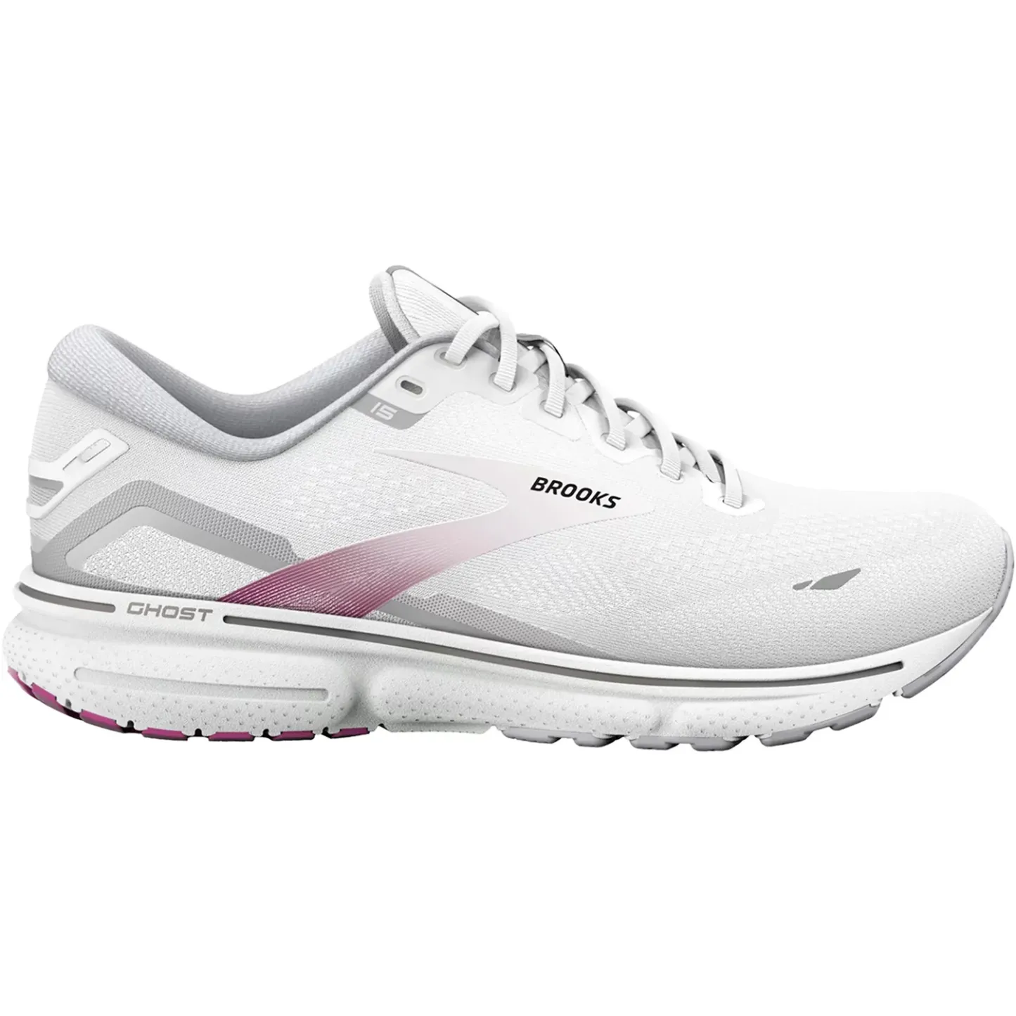 These Brooks Ghost 15 White/Oyster/Viola Mesh Women's Shoes have the following features: