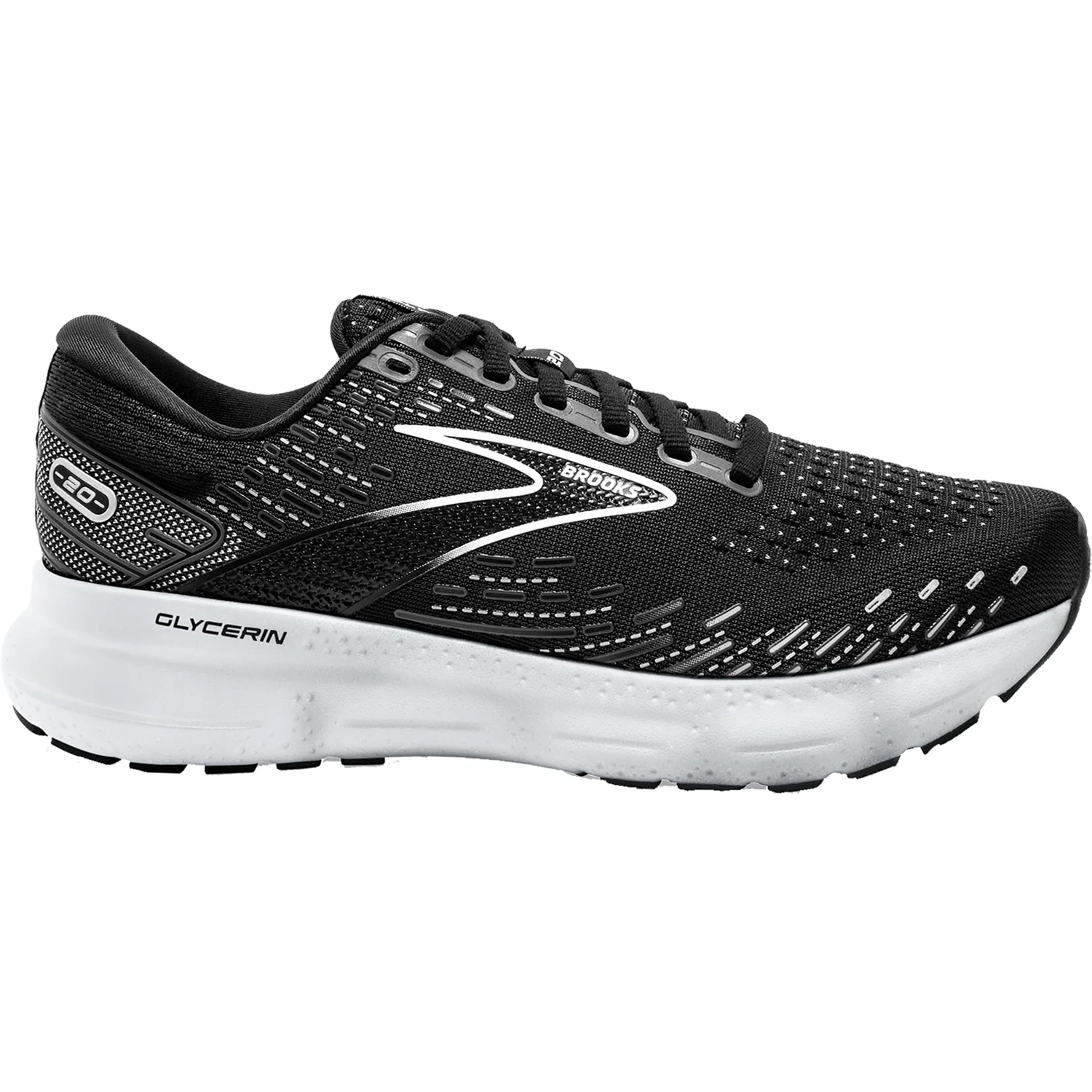 These Brooks Glycerin 20 Black/White/Alloy Mesh Women's Shoes have the following features: