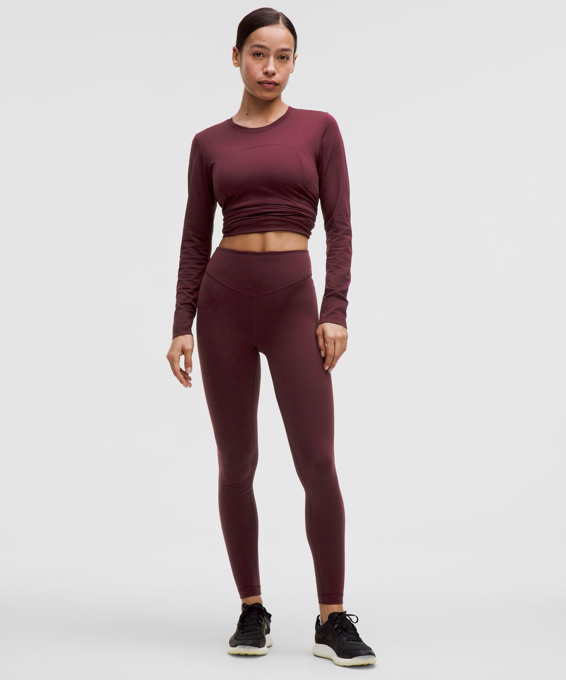 High rise keeps you feeling covered as you move. Our 28" length is intended to sit at your ankle.