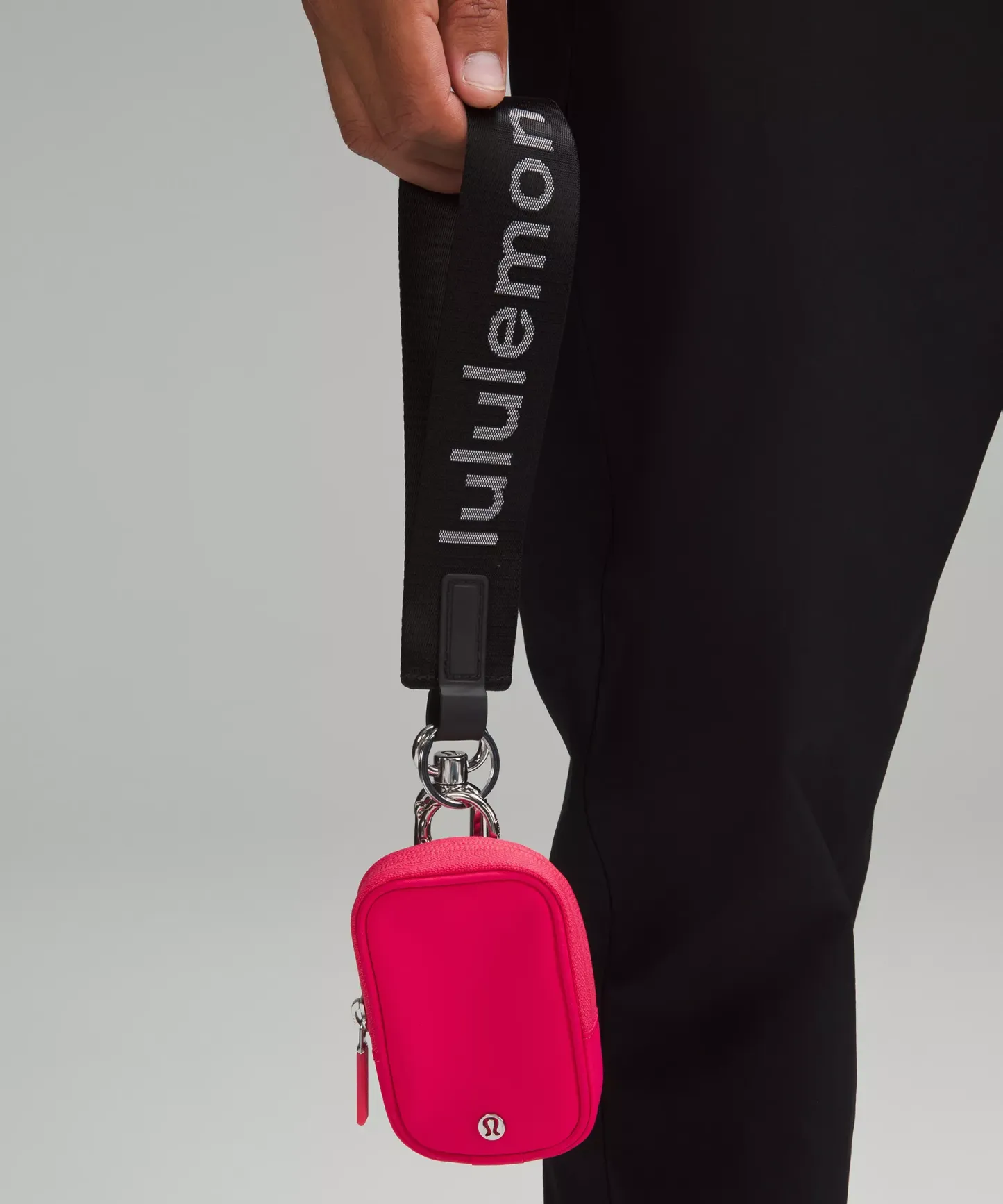 - Attach the pouch to your favourite bag using the D-ring