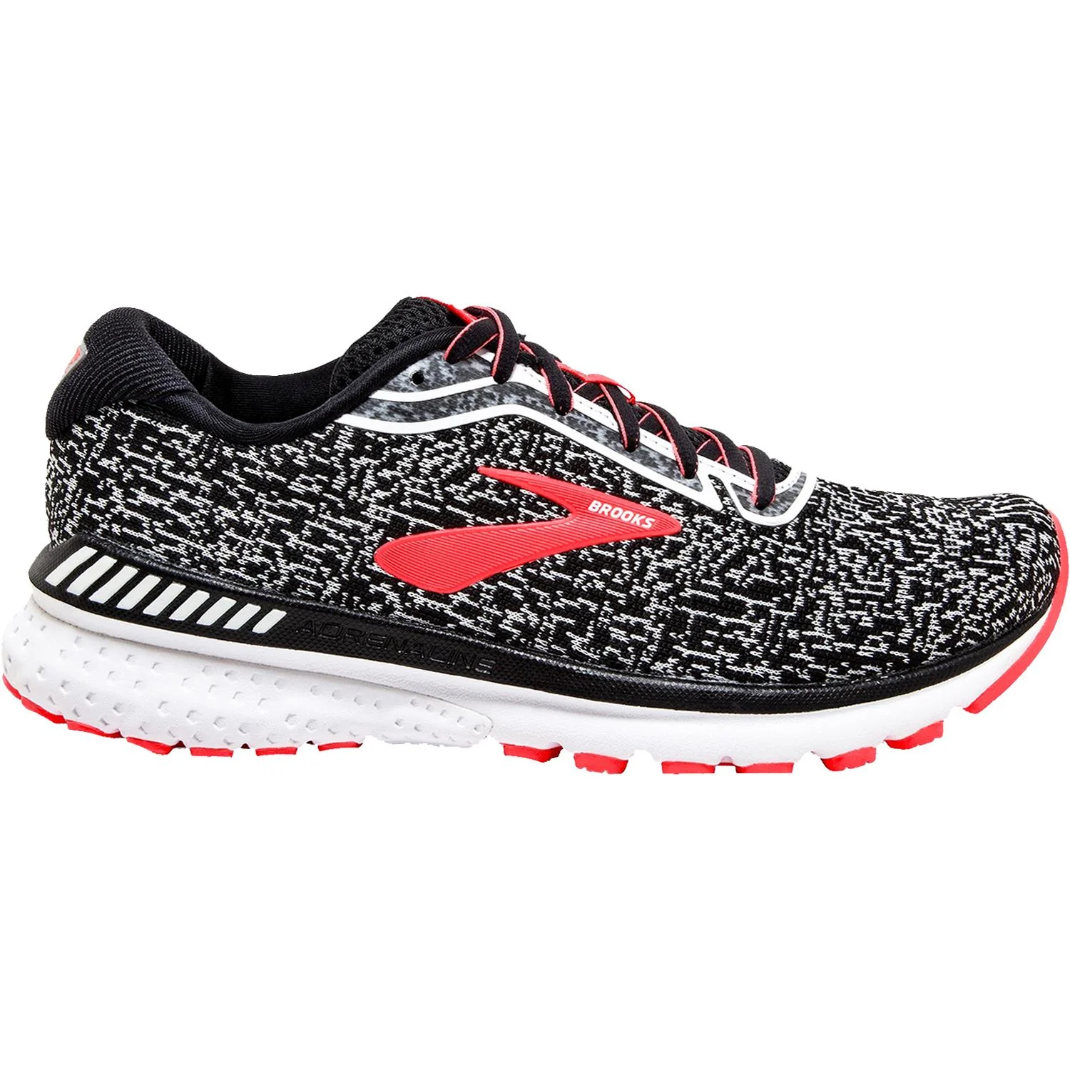These Brooks Adrenaline GTS 20 Black/White/Fiery Coral Mesh Women's Shoes have the following features: