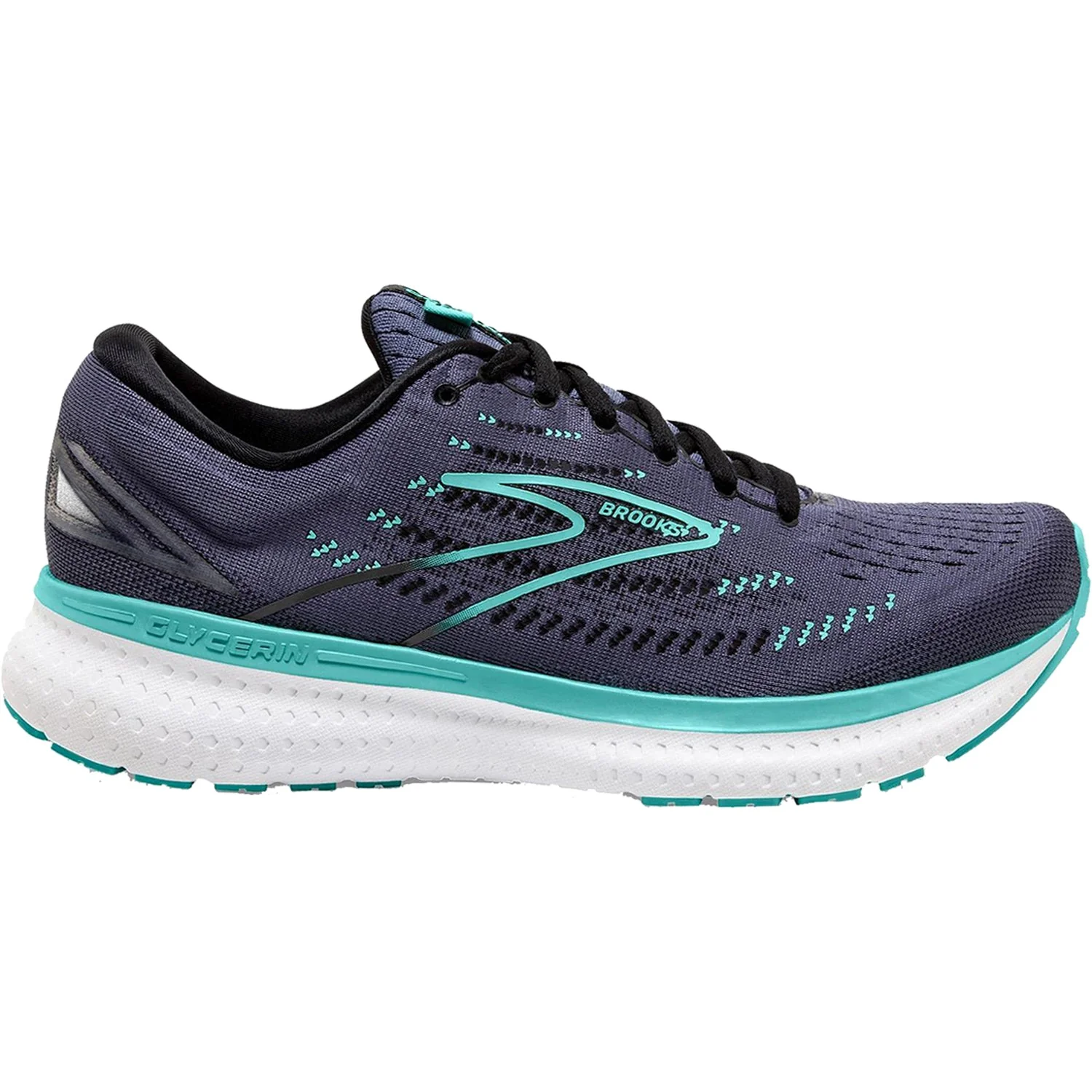 These Brooks Glycerin 19 Night Shadow/Black/Blue Mesh Women's Shoes have the following features: